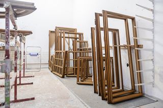 Des fenêtres à hauteur de plafond et le maintien de l'aspect extérieur : la rénovation de la maison communale d'Oekolampad est un projet ambitieux. Quadra Ligna s'occupe du remplacement en douceur des fenêtres et travaille en collaboration avec une entreprise de peinture.